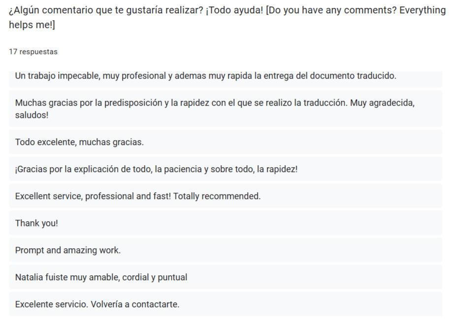 I daily translate personal documents from passports, birth, marriage and death certificates to police reports for any paperwork you need. Not only do I focus on translating, but also on the critic eye to check all details and information of each client.